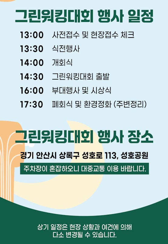 2024 안산시장배 제13회 그린워킹대회 행사 시간 안내!