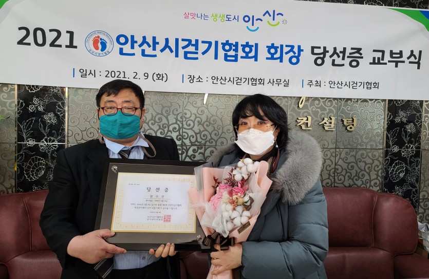 안산시체육회, 안산시걷기협회 통합 제2대 회장으로 권수진회장님이 당선되셨습니다.