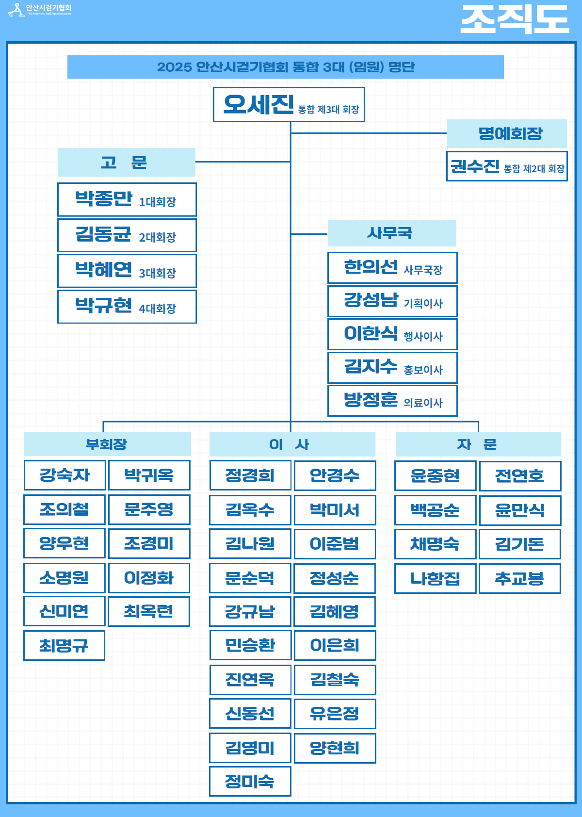 안산시 걷기협회 조직도입니다.