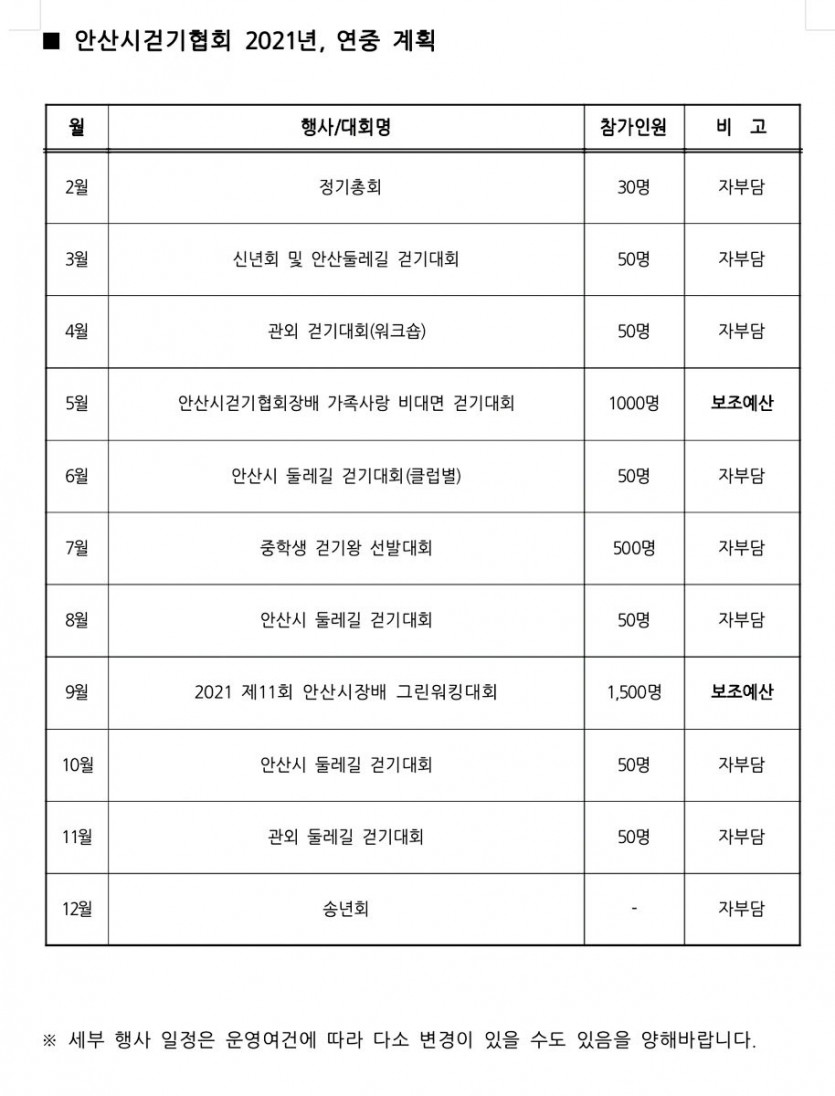 2021년도 안산시걷기협회 연중 계획(안) 페이지 정보 작성자 사무국장 댓글 댓글 0건 조회Hit 1,743회 작성일Date 21-03-03 16:17 본문 2021년도 안산시걷기협회 연중 계획(안) 입니다. 목록 이전글2021 비대면 안산시걷기협회장배 가족사랑 플로깅 걷기대회 (2021.12.01~12.15) 21.11.24 댓글 0 댓글목록 등록된 댓글이 없습니다.